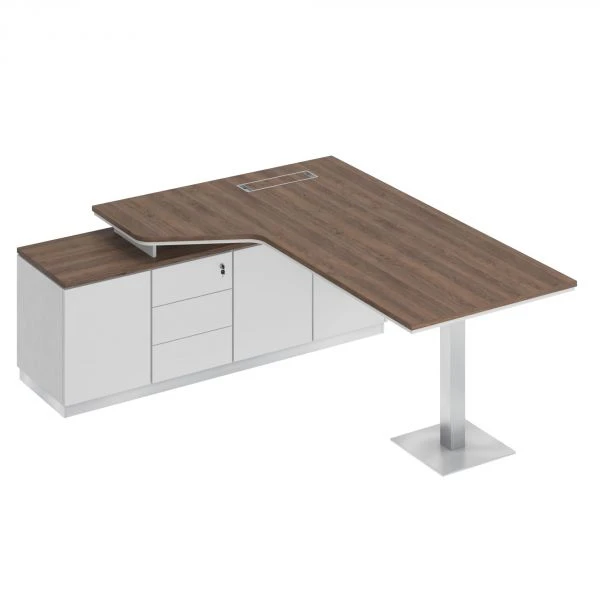 Стол руководителя эргономичный на опорной тумбе левый СИ 113 2989-025