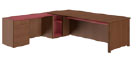 Стол руководителя с передней панелью и приставным столом в коже с 4-мя ящиками D023 3024-002