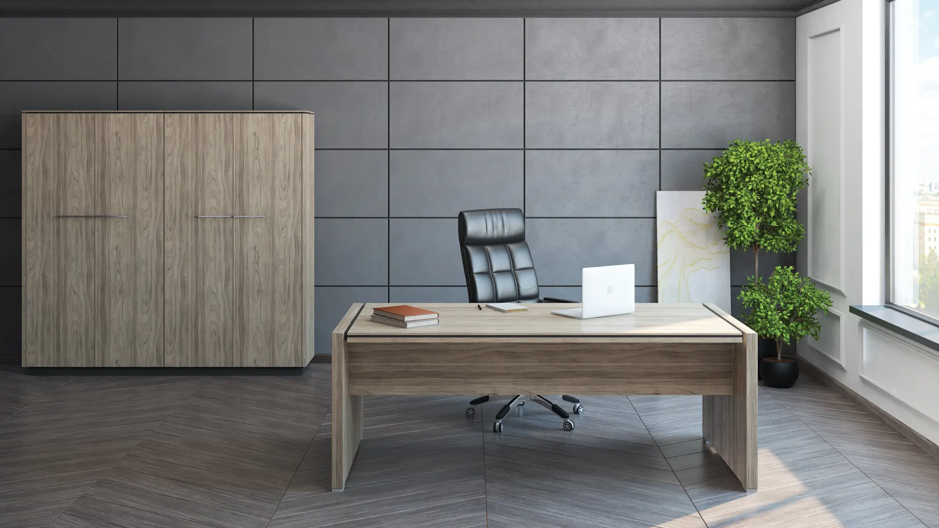 В этом разделе каталога собраны элементы этой серии. В ассортименте представлены рабочие столы, шкафы, тумбы и приставки в различных вариациях. Такой набор поможет с комфортом обустроить кабинет руководителя для того, чтобы он полностью погрузился в решение вопросов. Каждый элемент хорошо продуман и функционален.