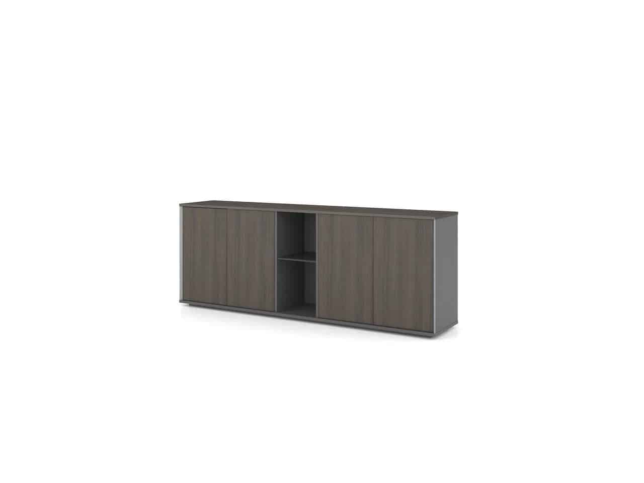 Низкая греденция с 4-мя раздвижными дверями. Открытая полка посредине.