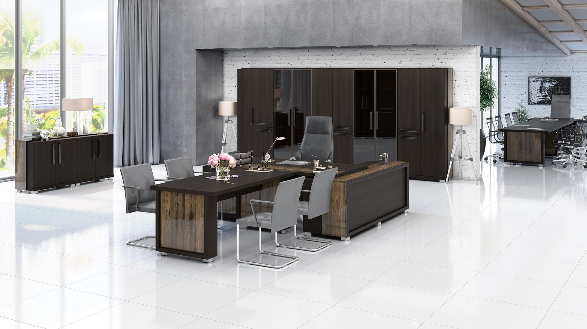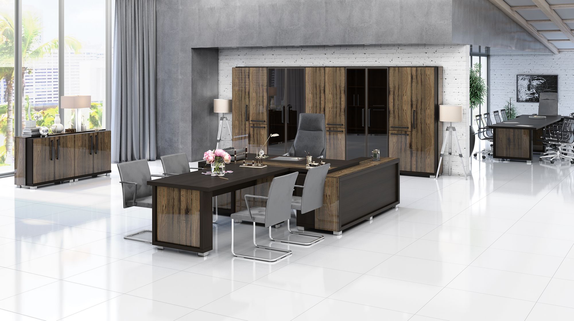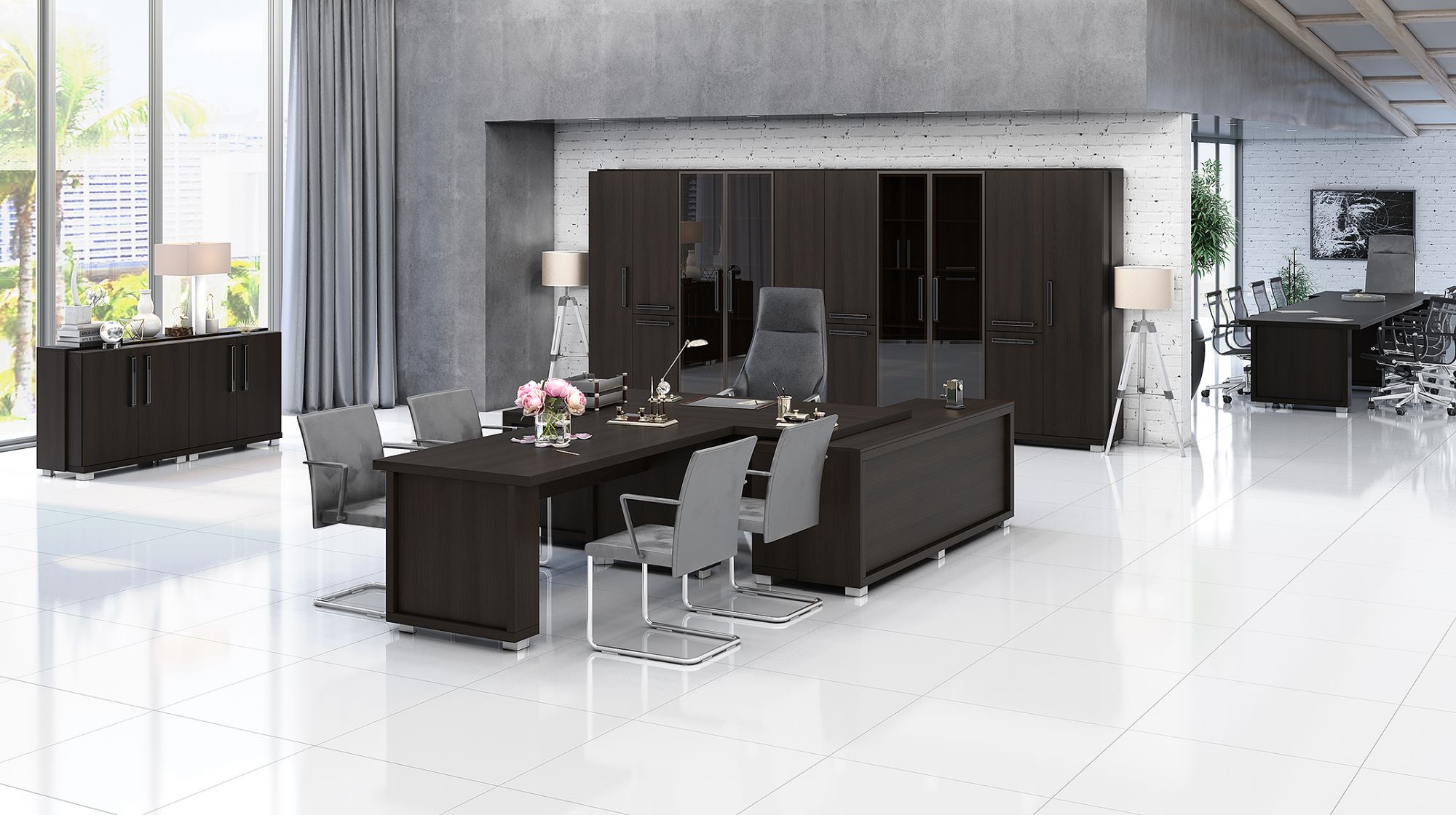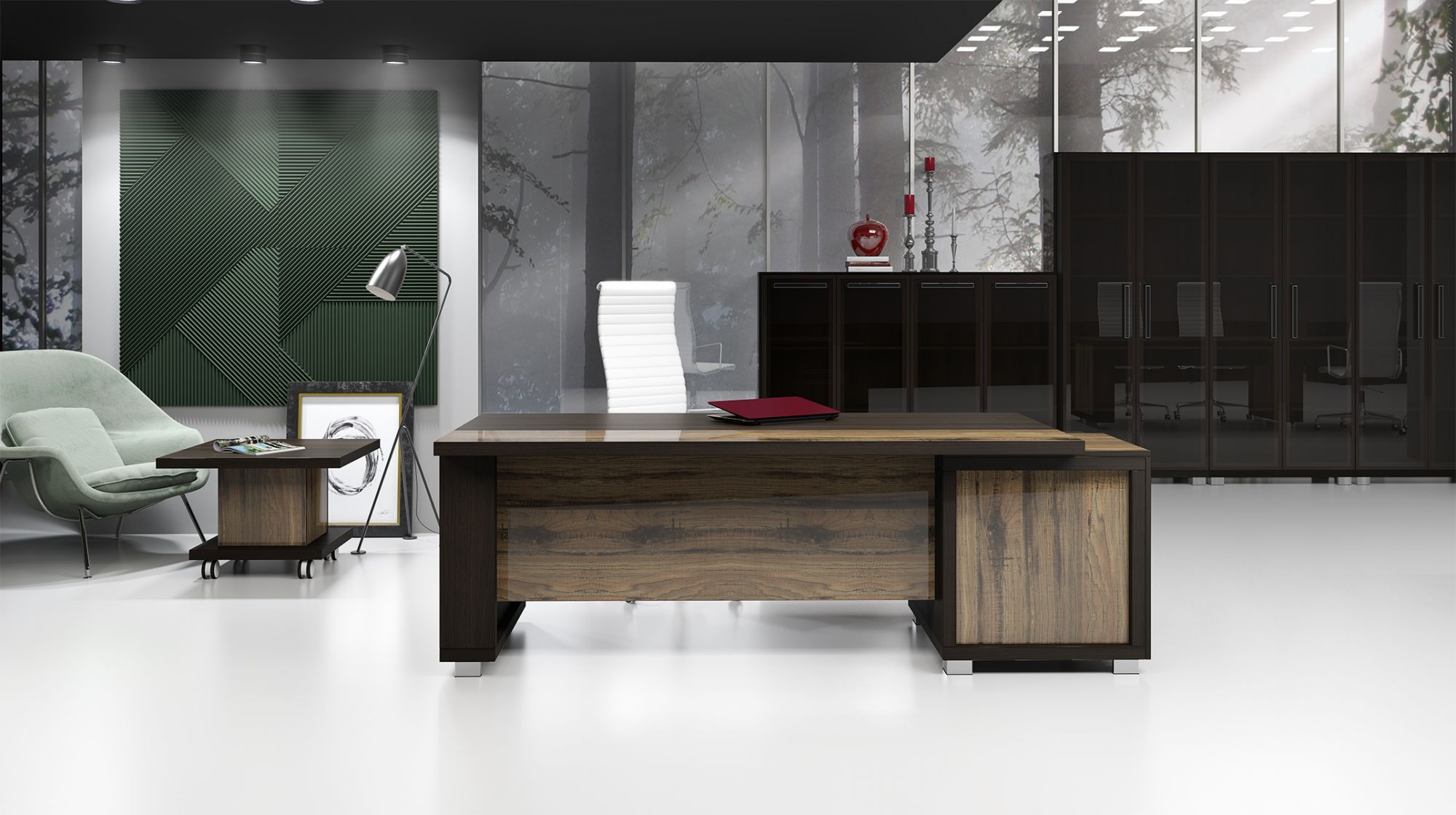 Мебельные комплекты для руководителей - это кабинеты, которые обеспечивают чувство роскоши и утончённости и продуманы до мельчайших деталей. Благодаря проработанному до мельчайших деталей дизайну, применению передовых материалов неизменно высокого качества, фурнитуры люкс-класса от западноевропейских производителей и широким возможностям для формирования персонального интерьера этот комплект пользуется неизменно высоким спросом.