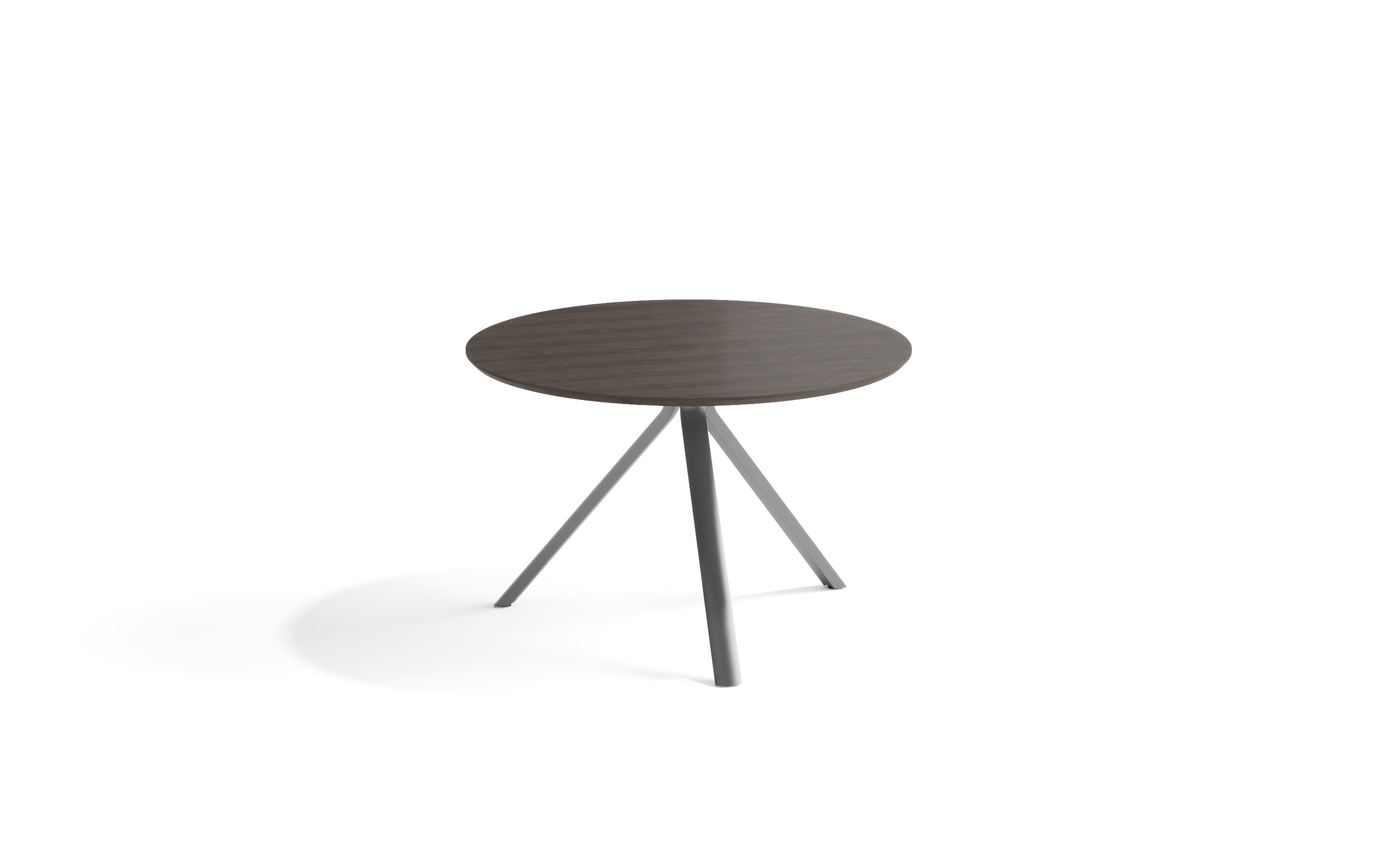 Круглый стол для переговоров со шпонированной столешницей и ножками из алюминиевого сплава.