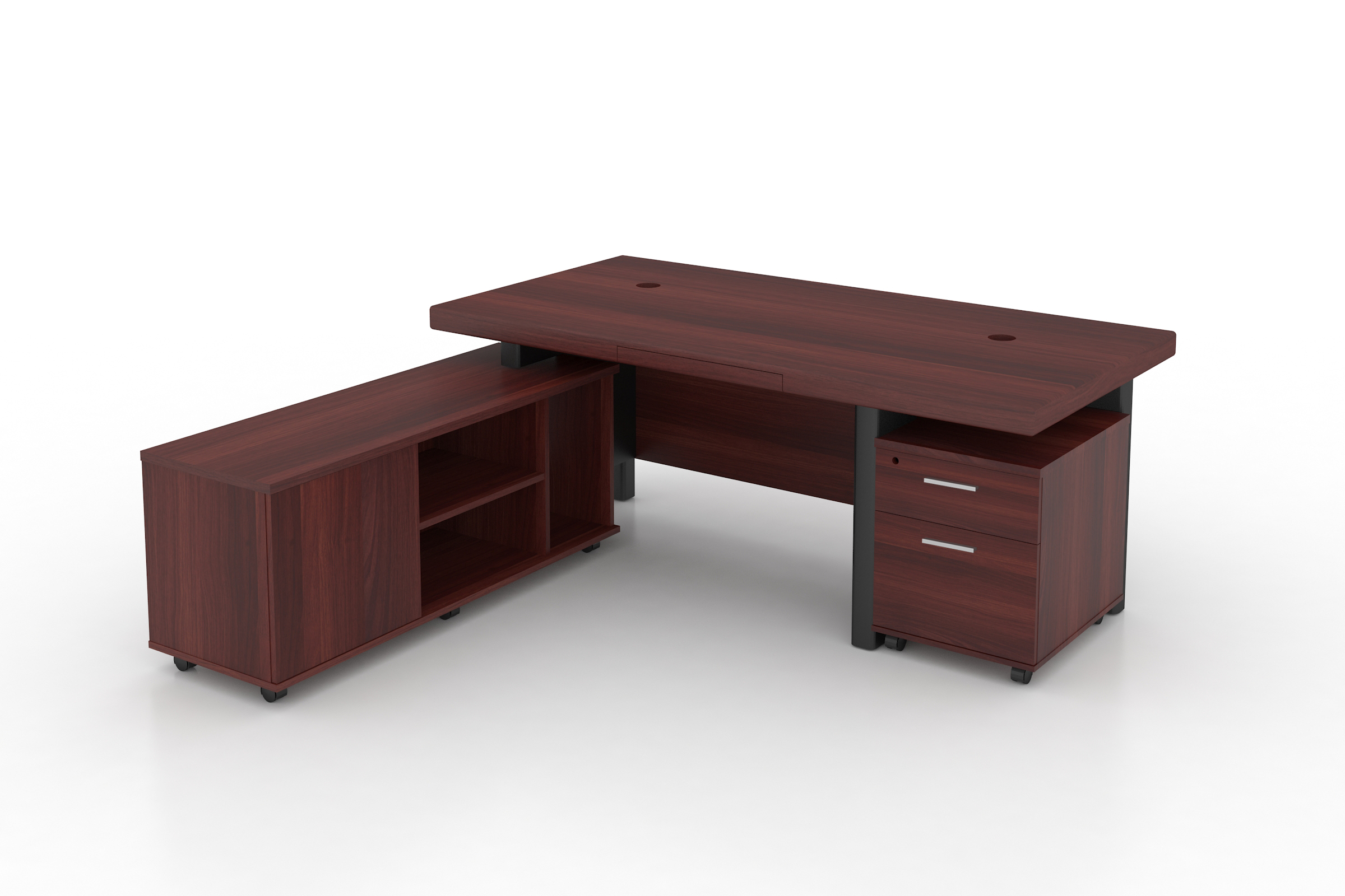 "L-образный стол для руководителя с отделкой из шпона С мобильными боковыми ящиками и мобильной тумбой Круглые кабельные вставки Направляющая Hettich, замок BM Lock, амортизирующая петля FGV"