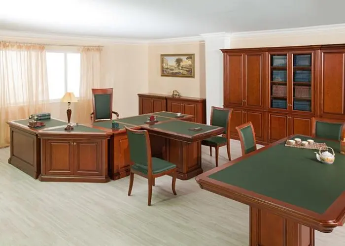 К несомненным достоинствам кабинета Мистер стоит отнести массивные (110 мм) столешницы с бюваром, наличие фригобара, использование современной фурнитуры с доводчиками, модульную конструкцию стола для переговоров и, в целом, высокое качество мебели. Стоит отметить, что все элементы кабинет руководителя Мистер есть в наличии и под заказ. Оформить заказ можно непосредственно на сайте компании или по телефону +7 (495) 698-60-99.