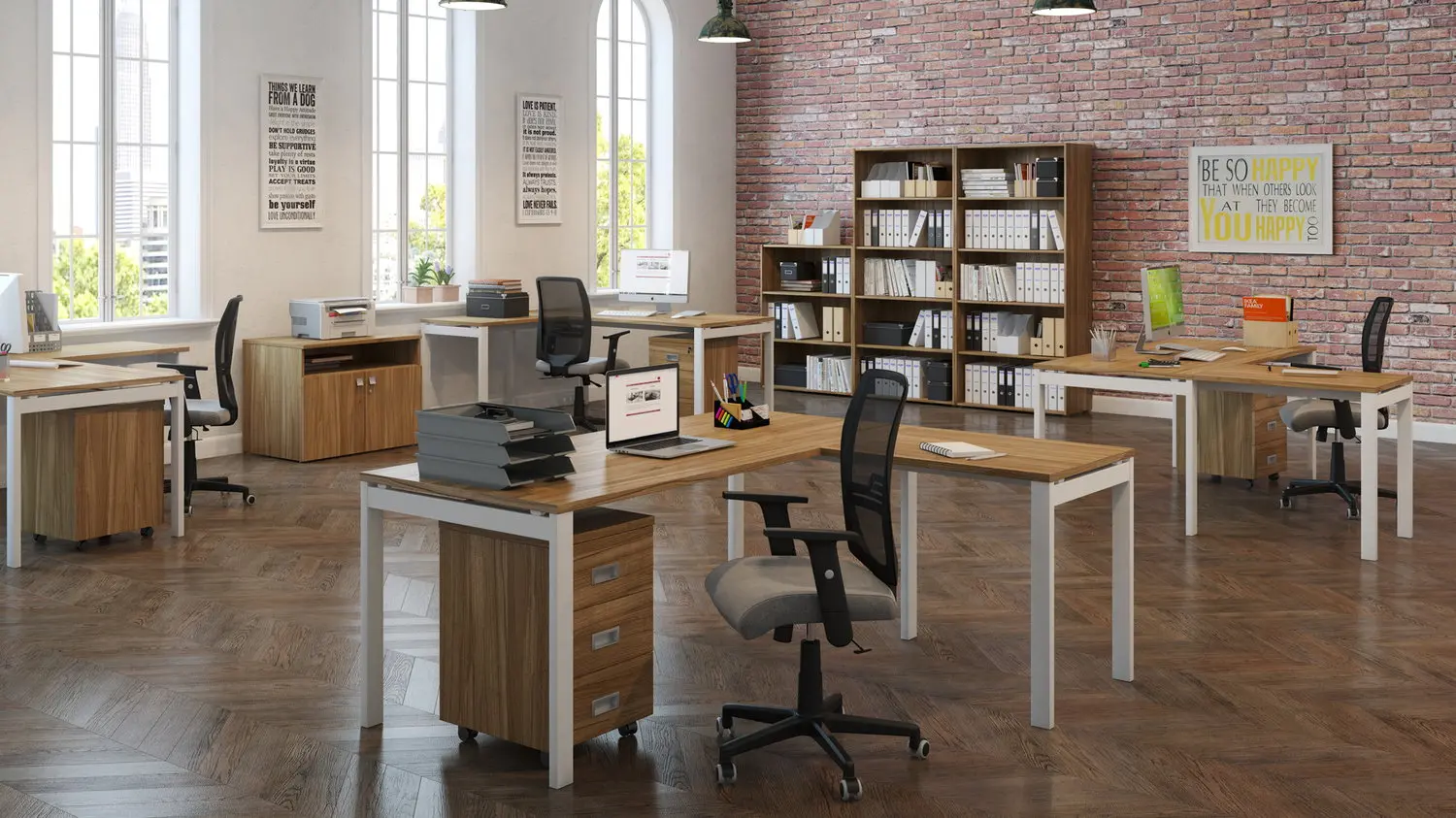 Возможности в обустройстве офиса этой серии безграничны. Это стало возможным, благодаря расширенному модельному ряду и продуманности конструкторских решений. Компактный и эргономичный стол можно дополнить различными аксессуарами, повышающими его функциональность – экранами, тумбами и приставками. В создании полноценного рабочего пространство также участвую такие предметы серии, как стеллажи, шкафы и тумбы.