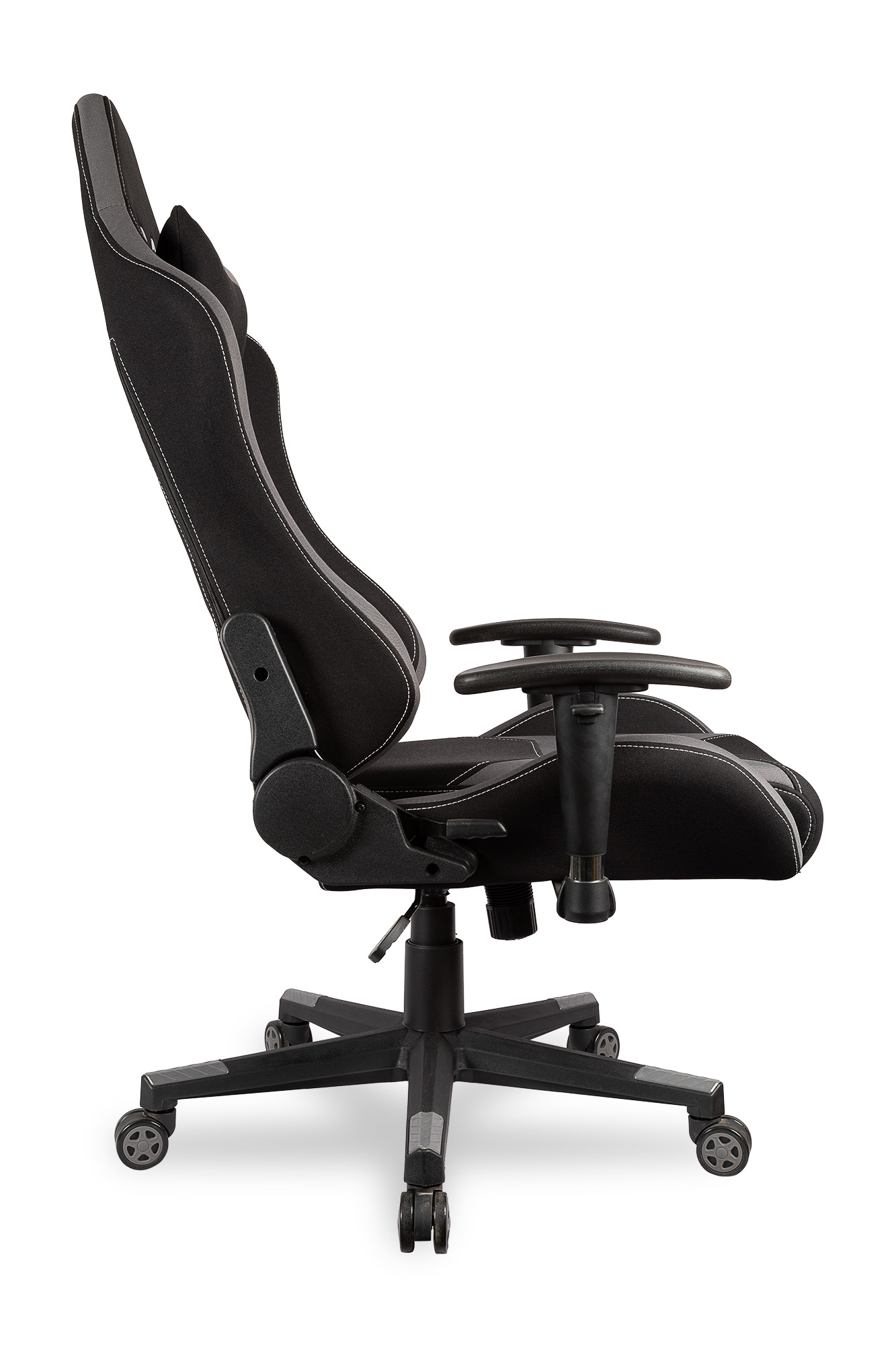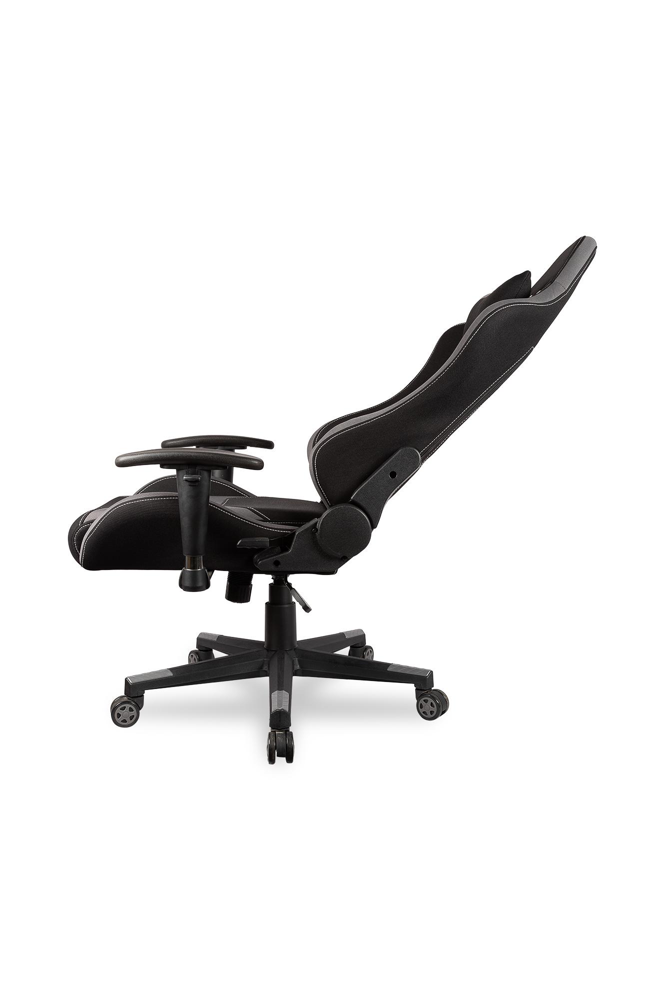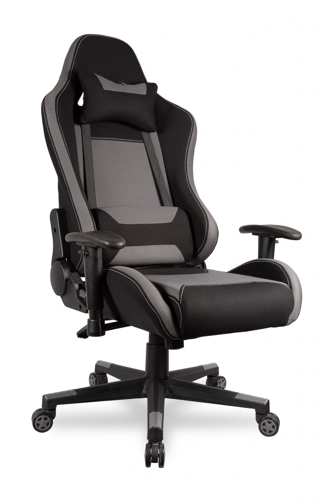 Профессиональное геймерское кресло в солидной комплектации! Механизм качания с фиксацией в рабочем положении. Материал обивки: ткань. Регулируемые подлокотники. Анатомическая высокая спинка, интегрированные подголовники. Боковая поддержка спины, поясничный валик, регулируемый по высоте. Дополнительная подушка для шеи. Увеличенная ширина и глубина сидения. Декоративная строчка. Цвет: черный/серый Ограничение по весу: 120 кг