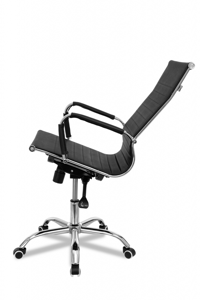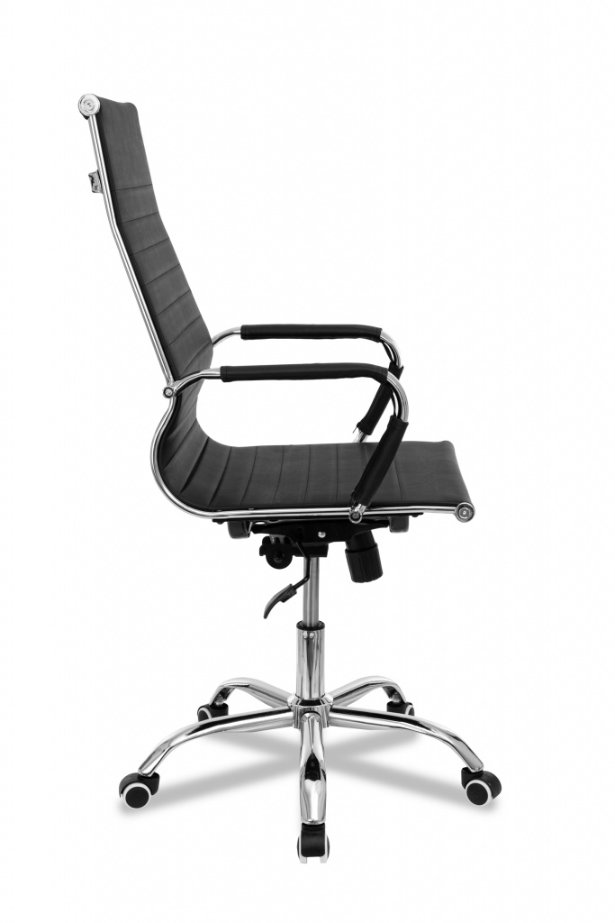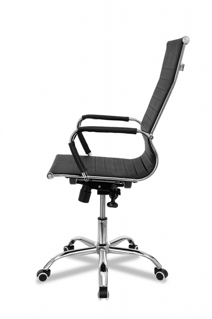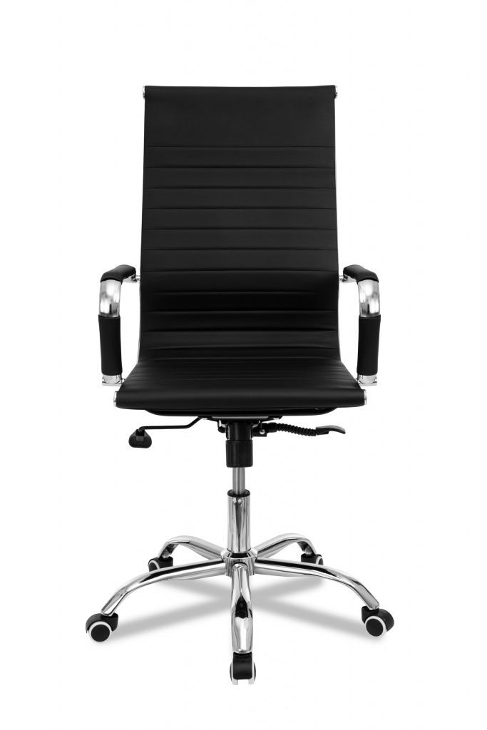 Механизм качания с регулировкой под вес и фиксацией в любом положении Регулировка высоты (газлифт) Крестовина металлическая хромированная 64 см Подлокотники с накладками Материал обивки: экокожа Цвет: черный Ограничение по весу: 120 кг Колеса прорезиненные
