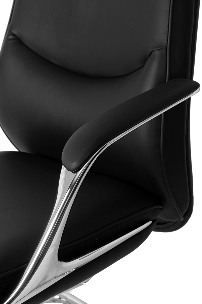 Конструкция: Каркас металлический хромированный Подлокотники выполнены из литого алюминия с накладками. Материал обивки: кожа PU Цвет: черный Ограничение по весу: 120 кг