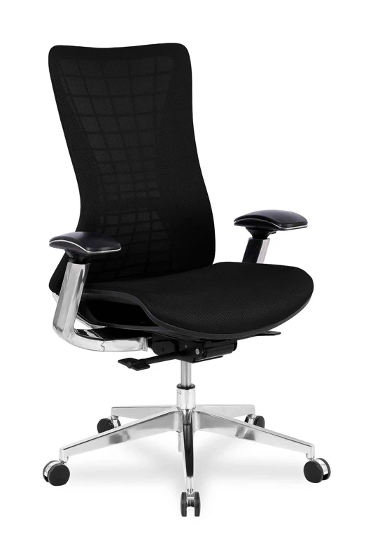 Синхромеханизм качания с регулировкой под вес и фиксацией в нескольких положениях Регулировка глубины сидения Регулировка высоты (газлифт) Крестовина литая алюминиевая. Подлокотники 3D. Выполнены из литого алюминия с мягкими накладками. Регулируются по высоте Материал обивки: высокоэластичная сетка Ограничение по весу: 120 кг Колеса прорезиненные