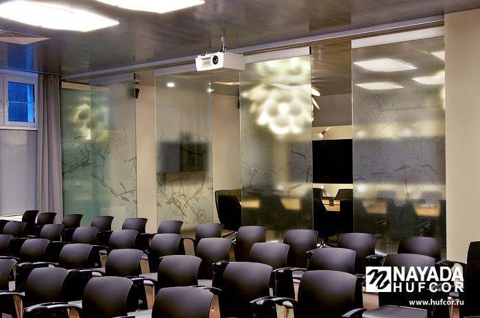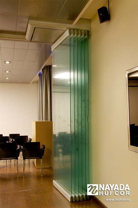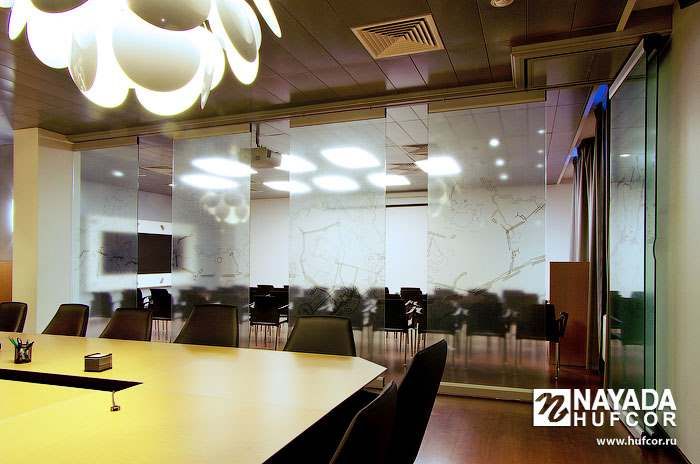 - По причине высоких цен на офисные площади использовать их необходимо с максимальной отдачей. В этом их владельцам и арендаторам существенно помогают системы раздвижных перегородок Hufcor.