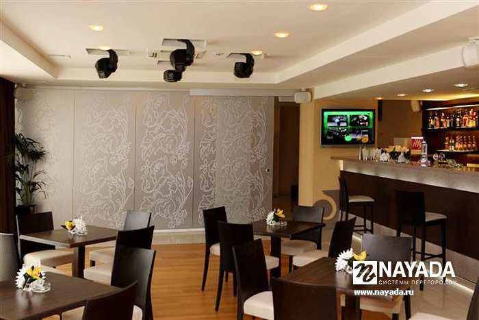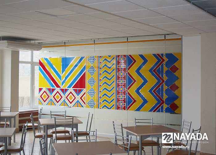 - Стеклянные секции перегородки легко и бесшумно передвигаются на роликах с пластиковой поверхностью, установленных на шариковых подшипниках.